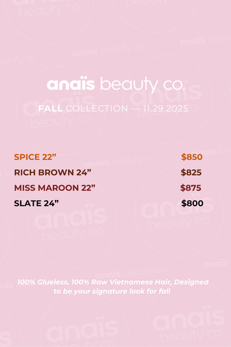 The Anaïs Fall Collection was seasonal drop featuring four units, designed for the fall and made entirely with 100% raw Vietnamese hair.